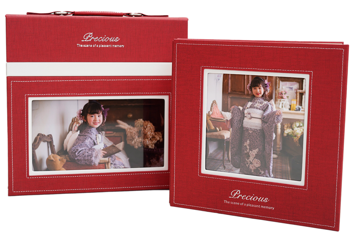 アルバムとカバン型ケースがセットになっています。お写真が取り外し出来るのでフレームとして飾ってもとっても可愛いです。10ページ18カット中身クリア加工。